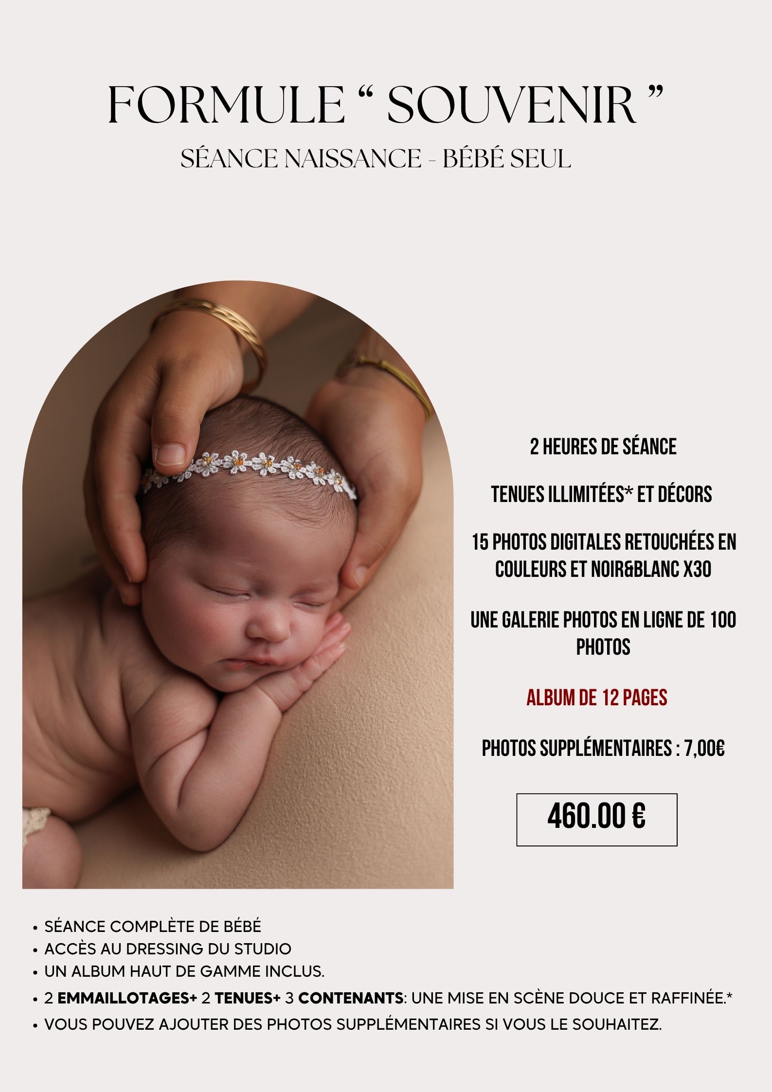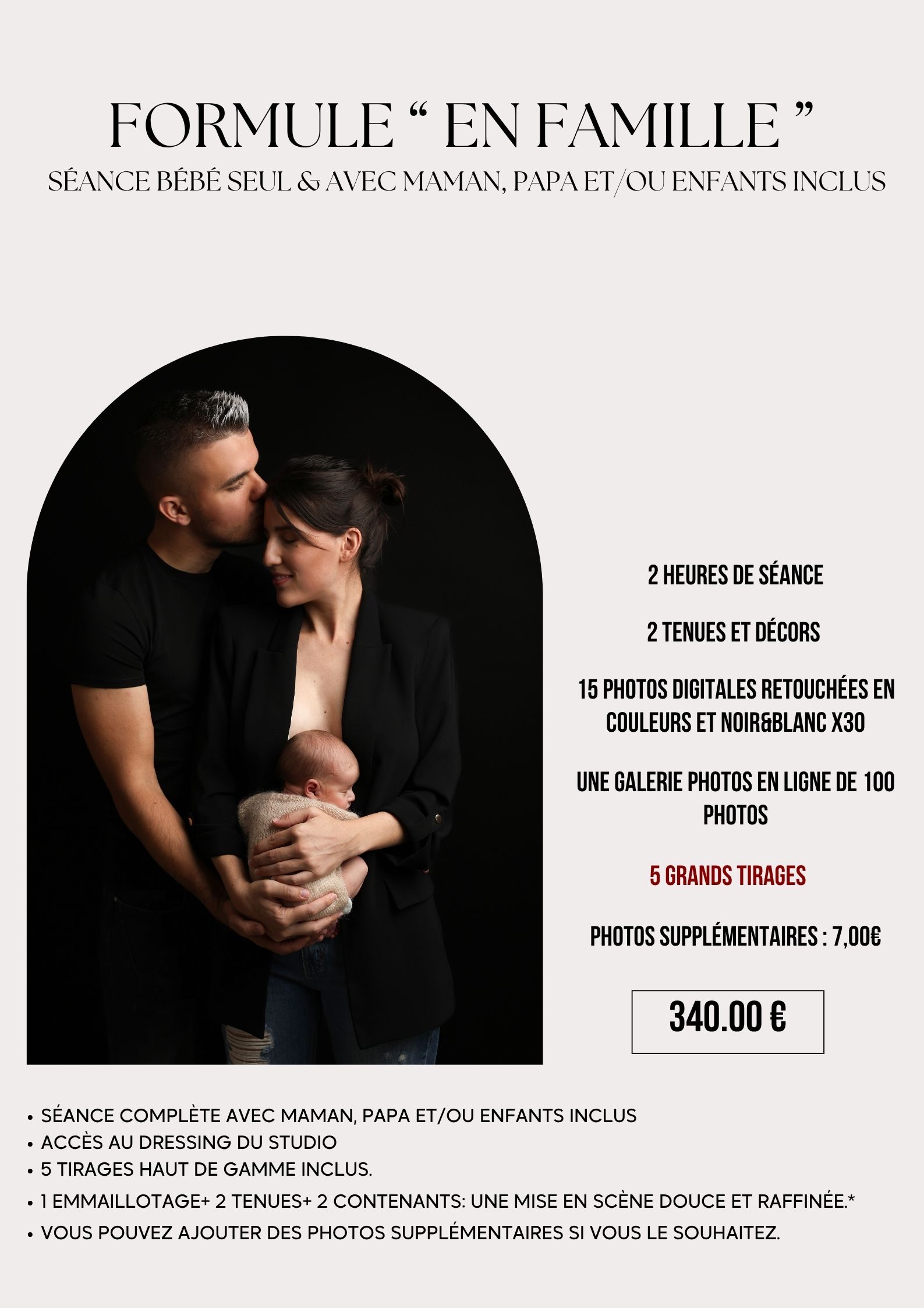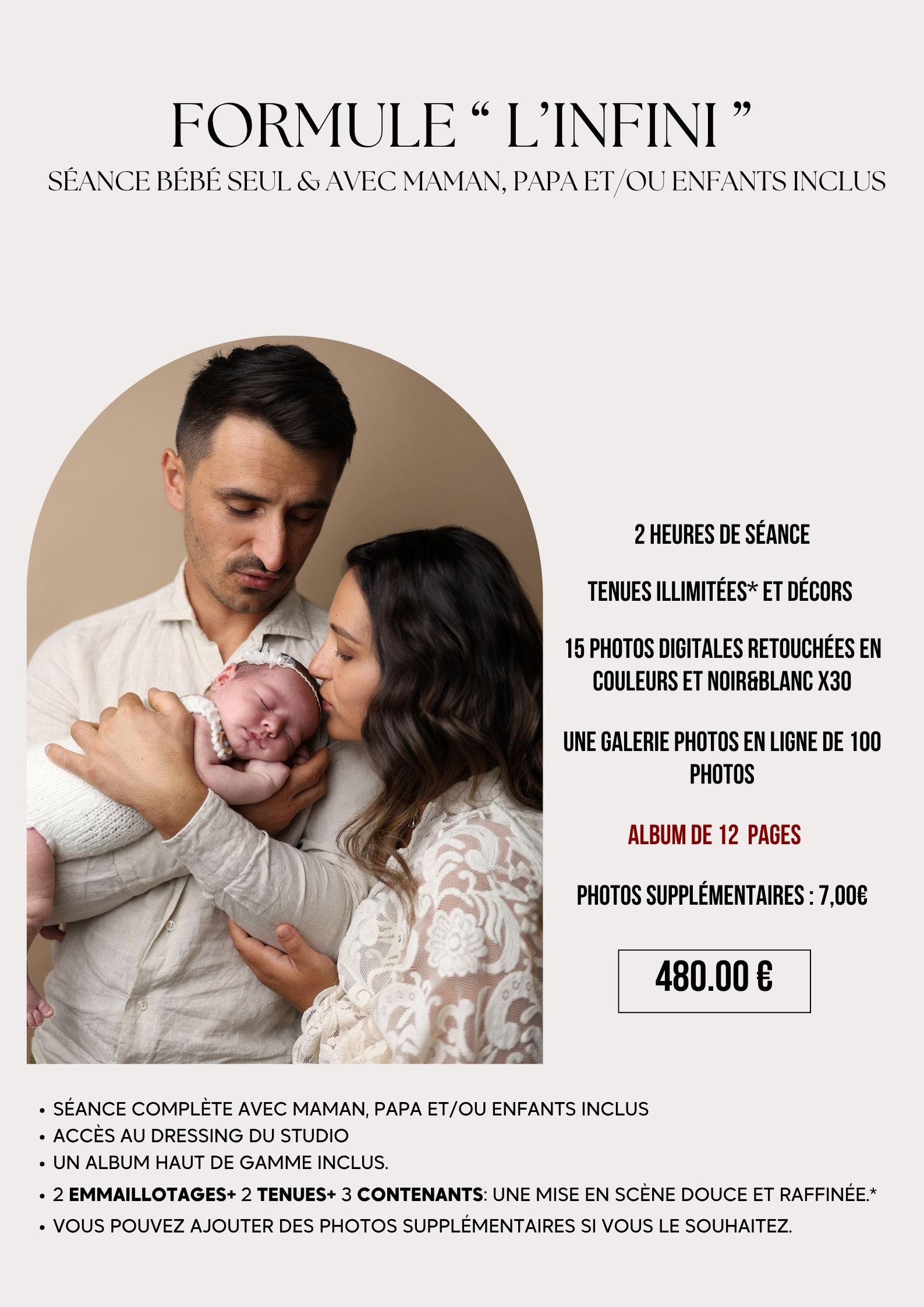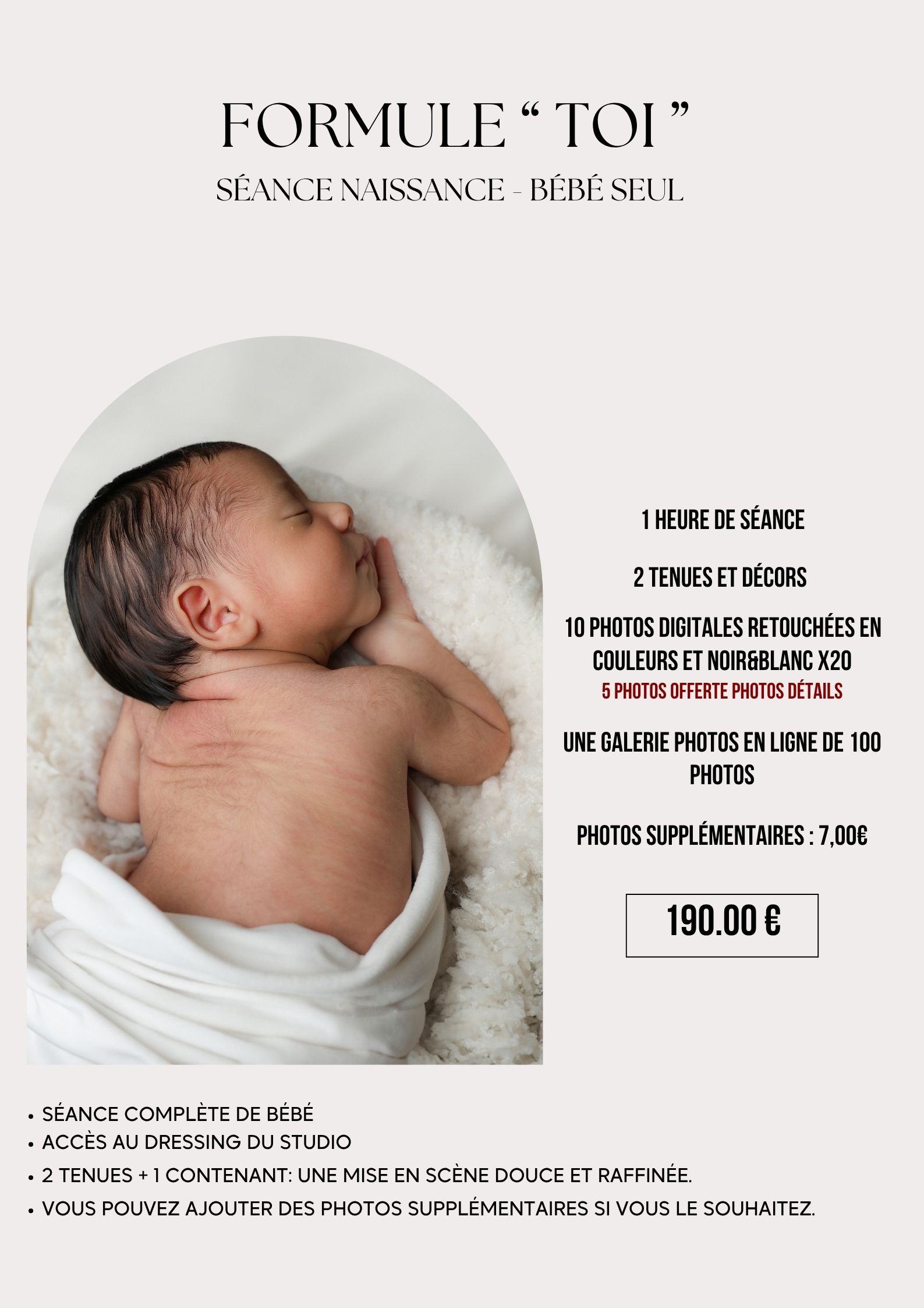 La séance naissance se fait uniquement au studio afin d’avoir un environnement contrôlé etune température optimum nécessaire au confort et à la sécurité de votre nourrisson.